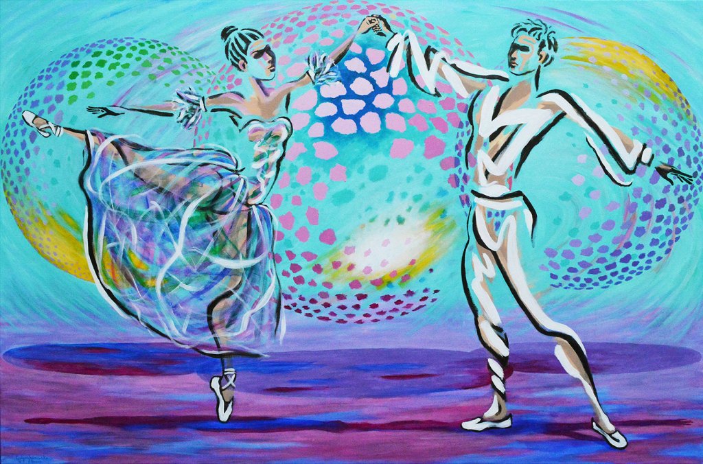 ballet de los mundos ingrávidos. 150×100 cms. acrílico sobre lienzo. 2016 / weightless worlds ballet. 150×100 cm. acrylic on canvas. 2016