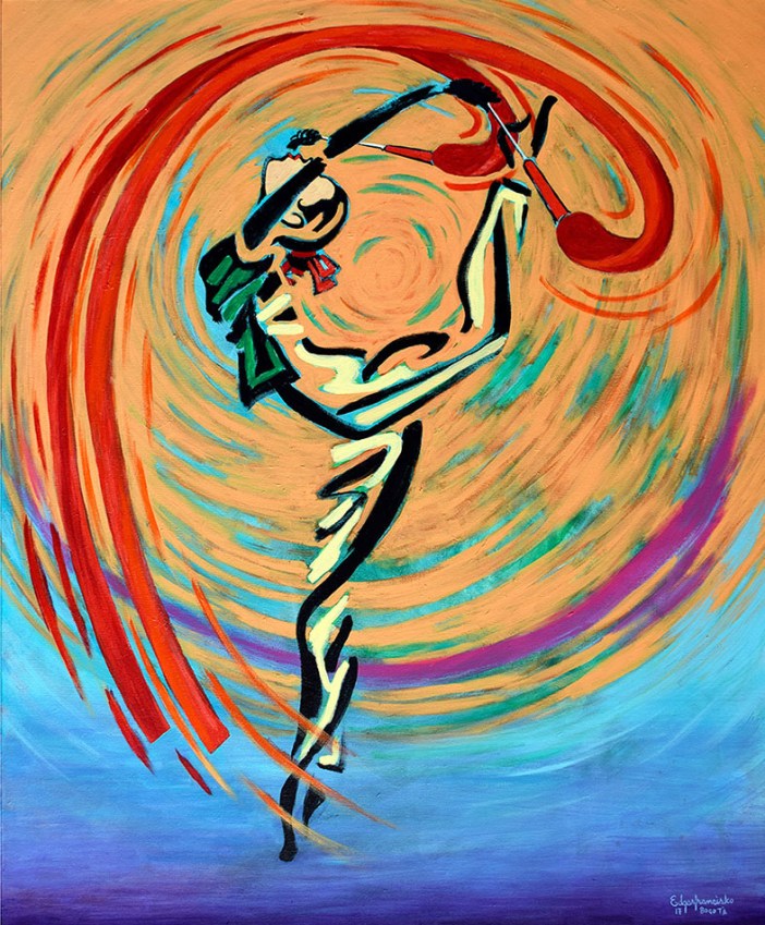 danza de la cinta. 76×91 cms. acrílico sobre lienzo. 2017 /ribbon dance. 76×91 cm. acrylic on canvas. 2017