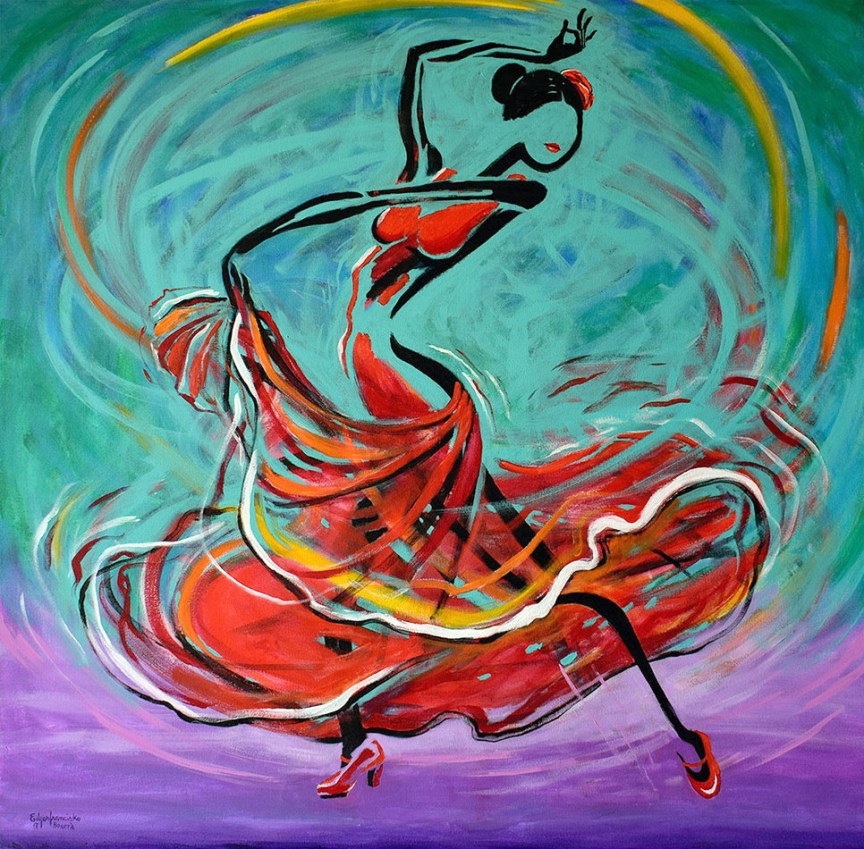 éxtasis flamenco. 50×70 cms. acrílico sobre lienzo. 2017 / gipsy rapture. 50×70 cm. acrylic on canvas. 2017