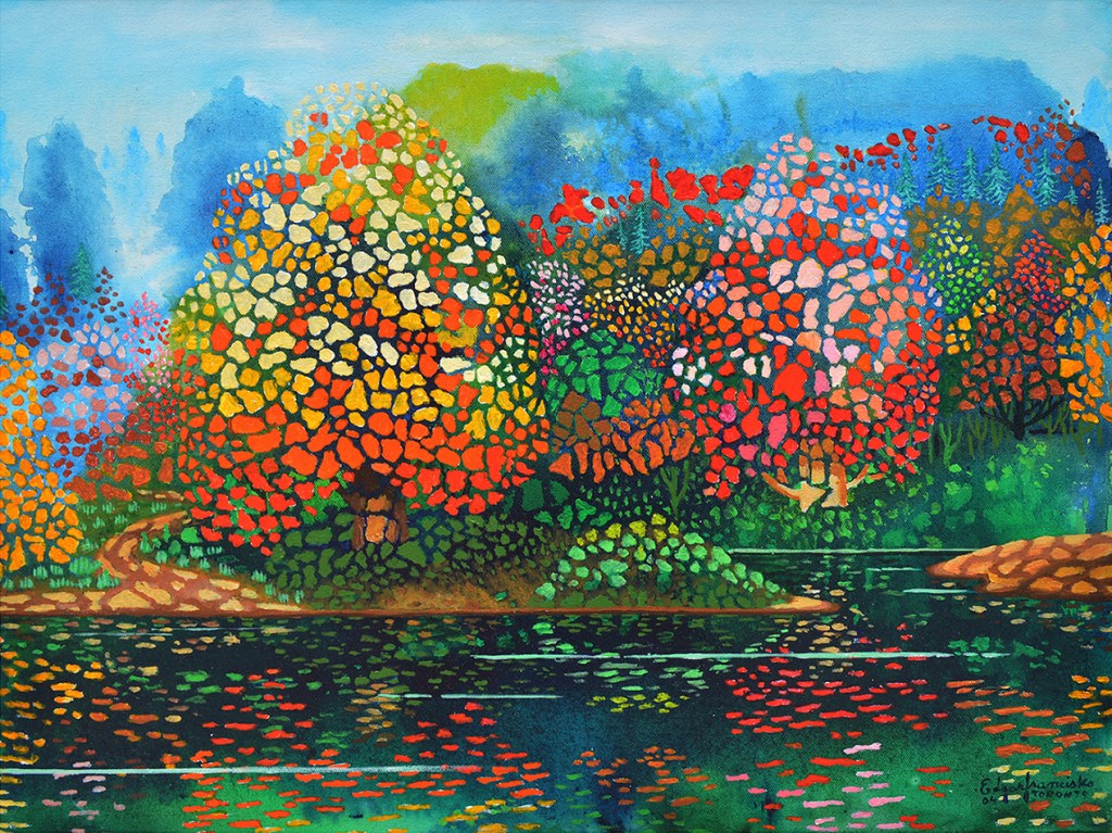 paz en otoño. 122×122 cms. acrílico sobre tela. 2022 / peace in autumn. 122x122cm. acrylic on canvas. 2022