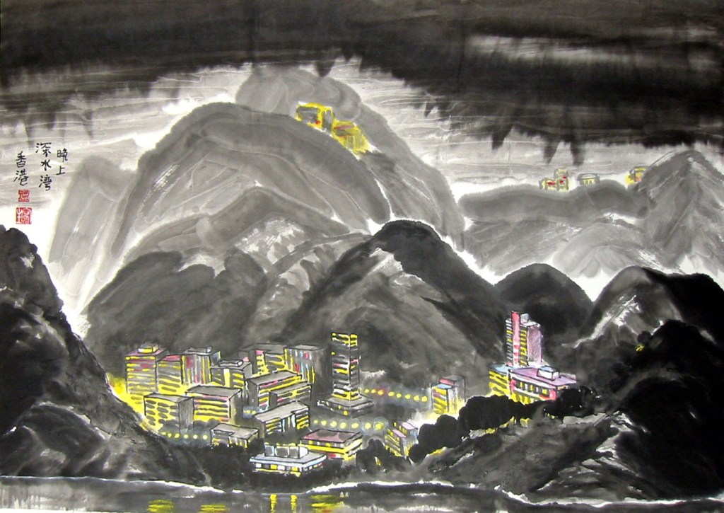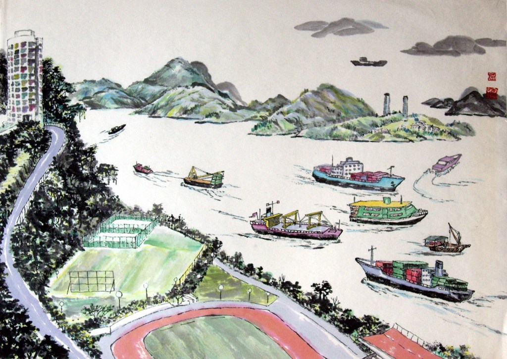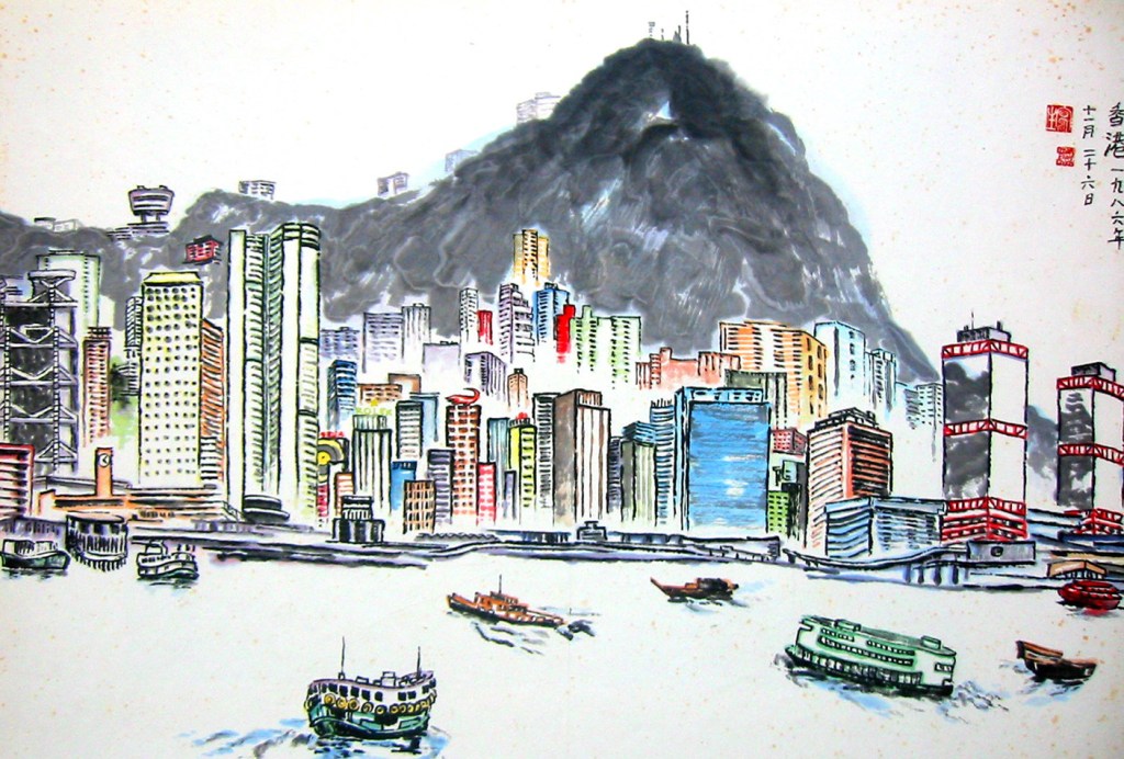 Hong Kong visto desde Kowloon. 63×45 cms. tinta china y acuarela sobre papel. 1986 / Hong Kong seen from Kowloon. 63×45 cm. chinese ink and watercolor on paper. 1986