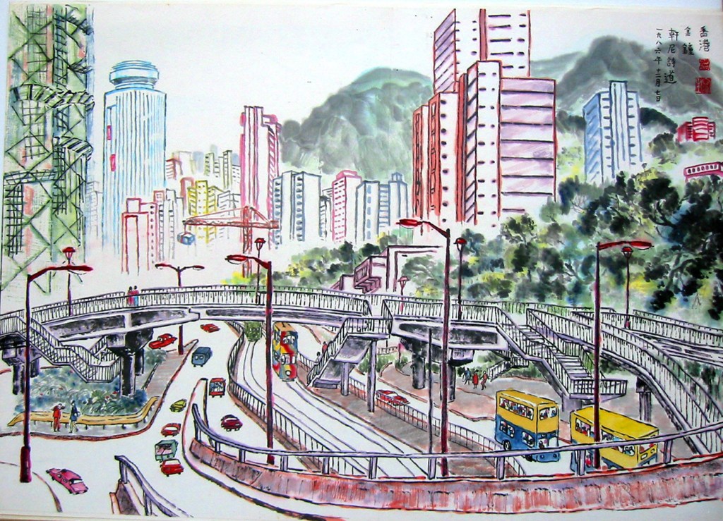 medio nivel Hong Kong. 65×44 cms. tinta china y acuarela sobre papel. 1986 / mid levels Hong Kong. 65×44 cm. chinese ink and watercolor on paper. 1986