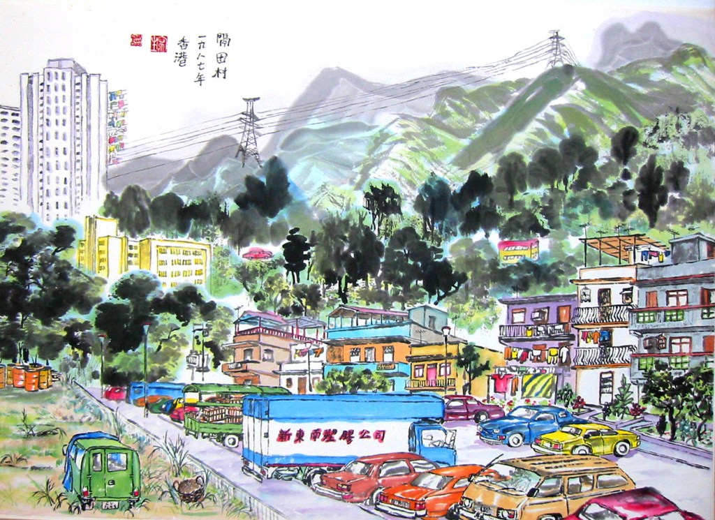 Kak Tin Jun. 63×45 cms. tinta china y acuarela sobre papel. 1987 / Kak Tin Jun village. 65×45 cm. chinese ink and watercolor on paper. 1987