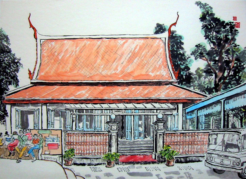 Universidad Silpakorn Bangkok. 63×45 cms. tinta china y acuarela sobre papel. 1988 / Silpakorn University Bangkok. 63×45 cm. chinese ink and watercolor on paper. 1988