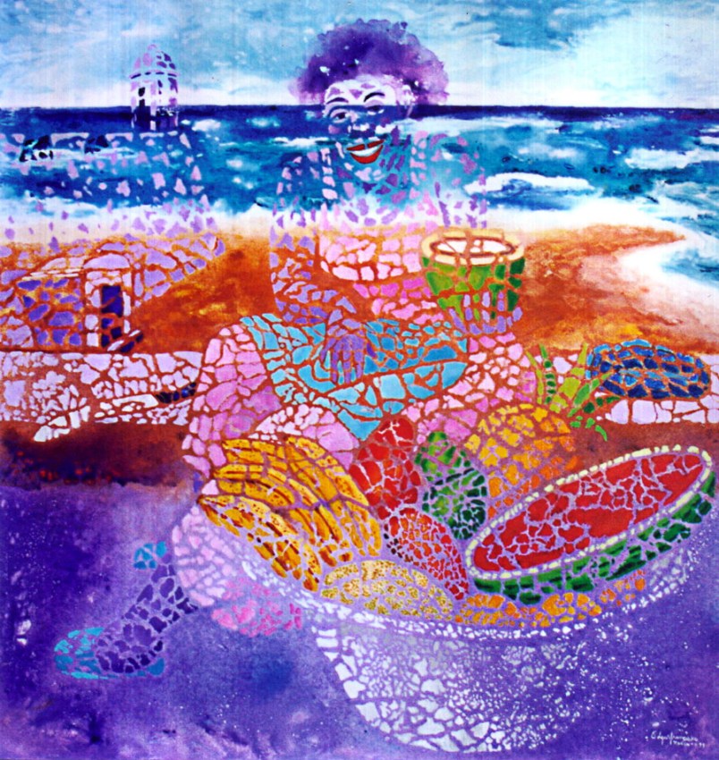 palenquera en el mar. 97×67 cms. acrílico sobre lienzo. 2004 / palenquera on the sea. 97×67 cm. acrylic on canvas. 2004