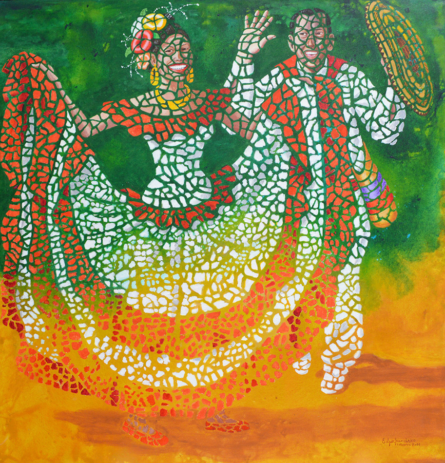 cumbia cartagenera. 92×76 cms. acrílico sobre lienzo. 2002