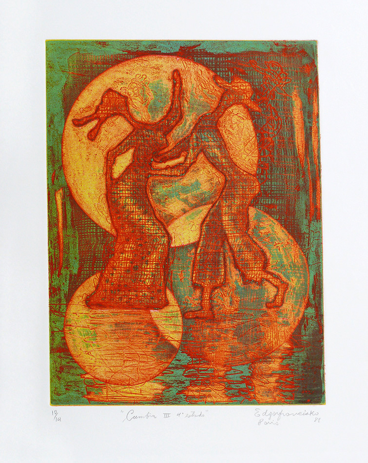 cumbia 3. 29×42 cms. aguafuerte a color. 1981