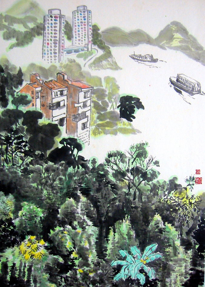 vista de Quilin. 00×00 cms. tinta china y acuarela sobre papel. xxxx