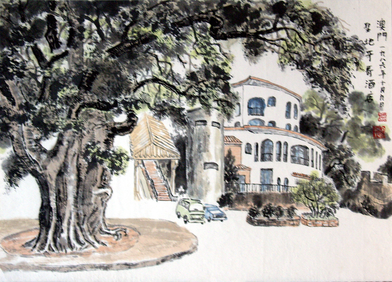 hotel Santiago Macao. 47×34 cms. tinta china y acuarela sobre papel. 19986