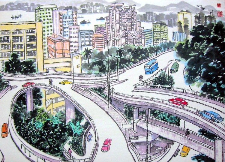 Hong Kong. 63×45 cms. tinta china y acuarela sobre papel. 1986