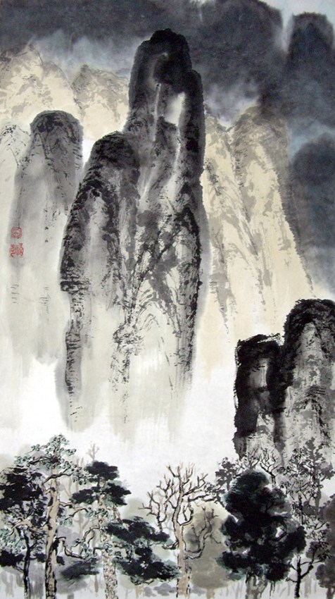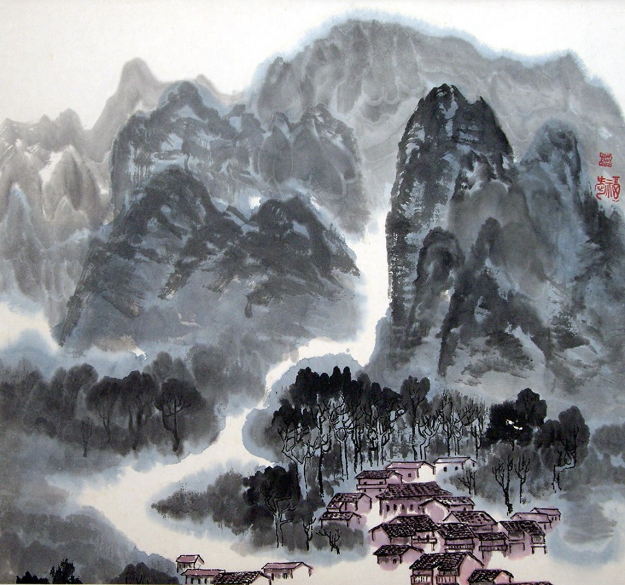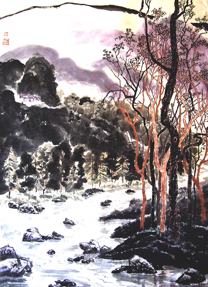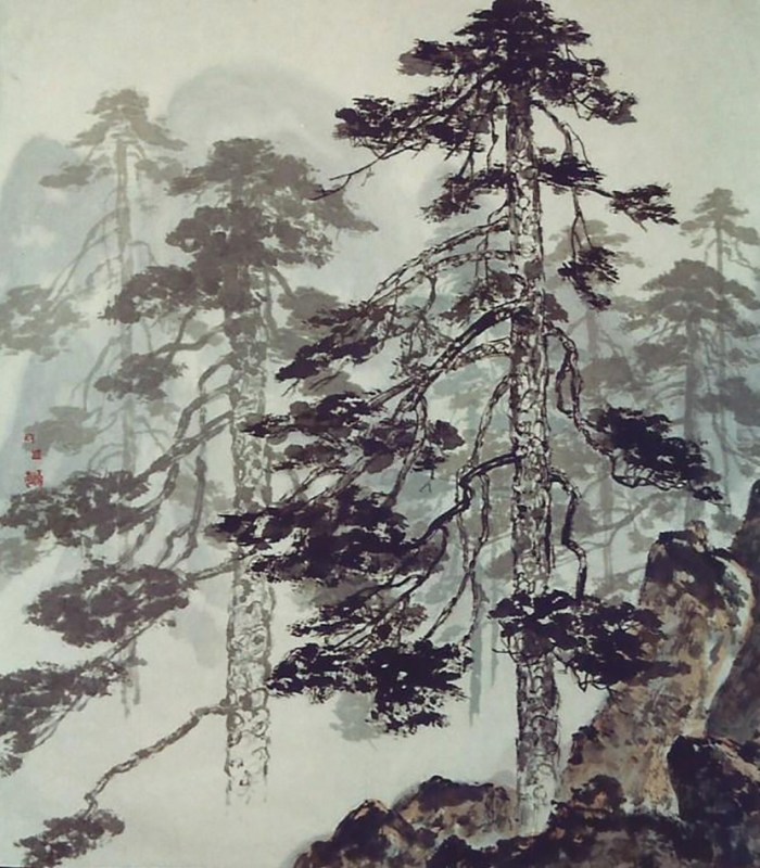 paisaje de Huang Shang. 00×00 cms. tinta china y acuarela sobre papel. xxxx