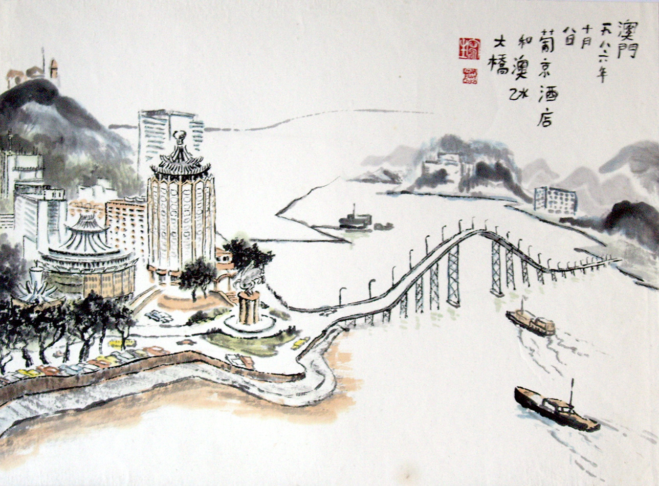 puente de Macao. 46×34 cms. tinta china y acuarela sobre papel. 1986