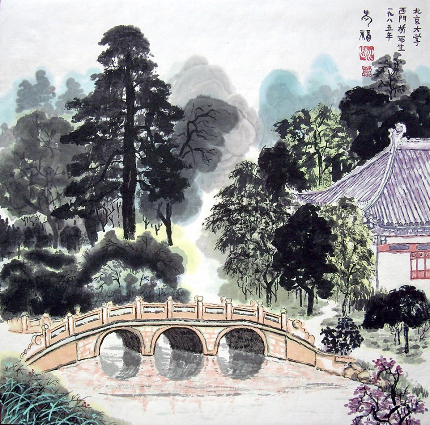 puente en Universidad de Beijing. 44×44 cms. tinta china y acuarela sobre papel. 1985