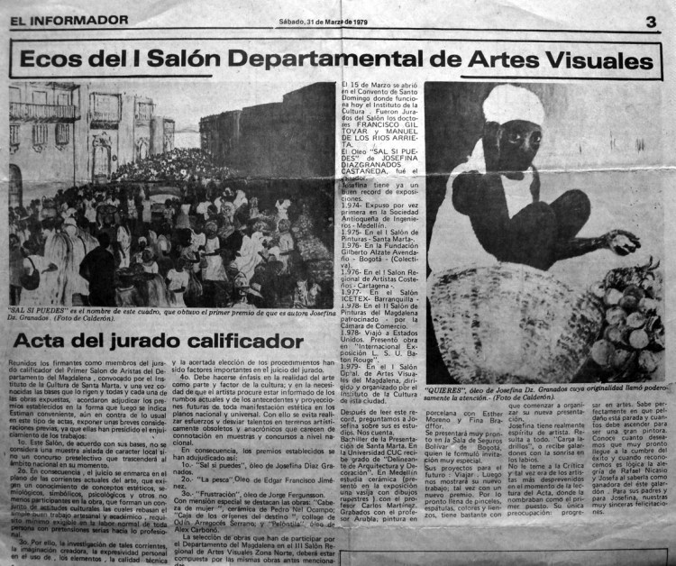 Diario El Informador, Sábado 31 de marzo de 1979, Santa Martha, Colombia / El Informador Daily, Saturday, March 31, 1979, Santa Martha, Colombia
