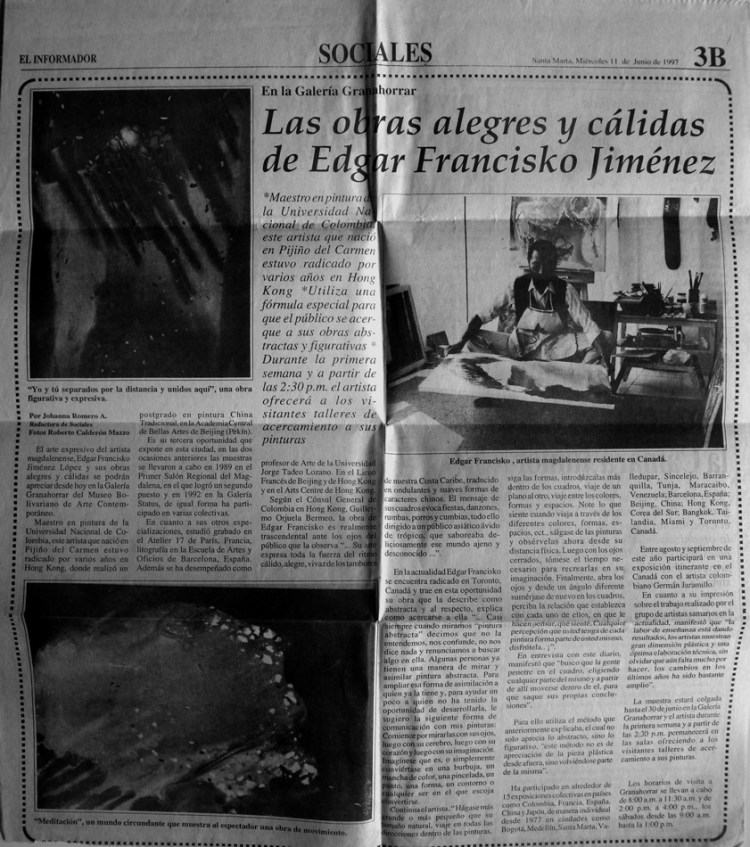 periódico El Informador, Miercoles 11 de Junio de 1997, Santa Martha, Colombia / El Informador newspaper, wednesday June 11, 1997 Santa Martha, Colombia
