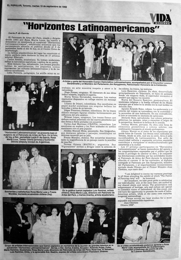 periódico El Popular, Martes 15 de Septiembre de 1998, Toronto, Canadá / El Popular newspaper, Tuesday September 15, 1998 Toronto, Canada