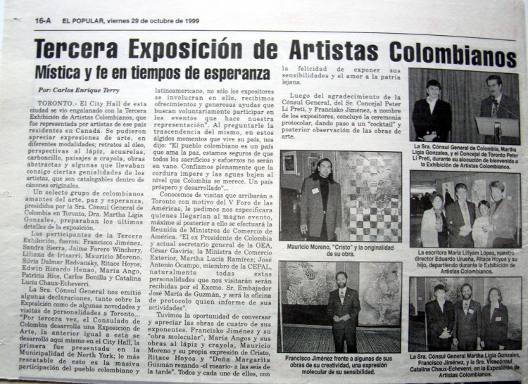 periódico El Popular, Viernes 29 de Octubre de 1999, Toronto, Canadá / El Popular newspaper, Friday 29, 1999, Toronto, Canada