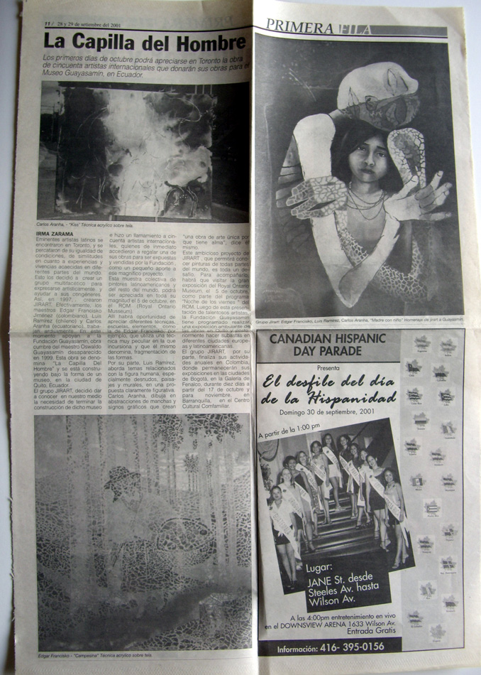 periódico Primera Fila, 28 y 29 de Septiembre de 2001, Toronto, Canadá / Primera Fila newspaper, September 28 and 29, 2001, Toronto, Canada
