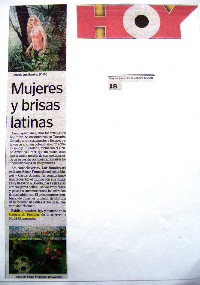 Diario Hoy, Jueves 26 de Octubre de 2001, Bogotá, Colombia / Hoy Daily. Thursday 26, October 2001, Bogota, Colombia